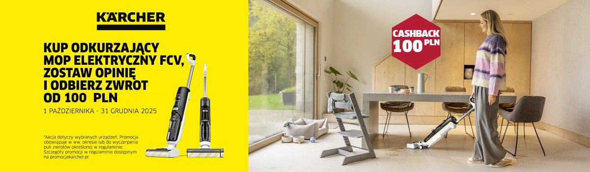 Podziel się opinią o urządzeniu na naszej stronie lub na podstronie naszego sklepu w porównywarce cenowej. Opinia powinna zawierać min. 250 znaków oraz hasztagi: #PromocjaKarcherFCVCashbackZaOpinie #OpiniaMotywowanaNagroda